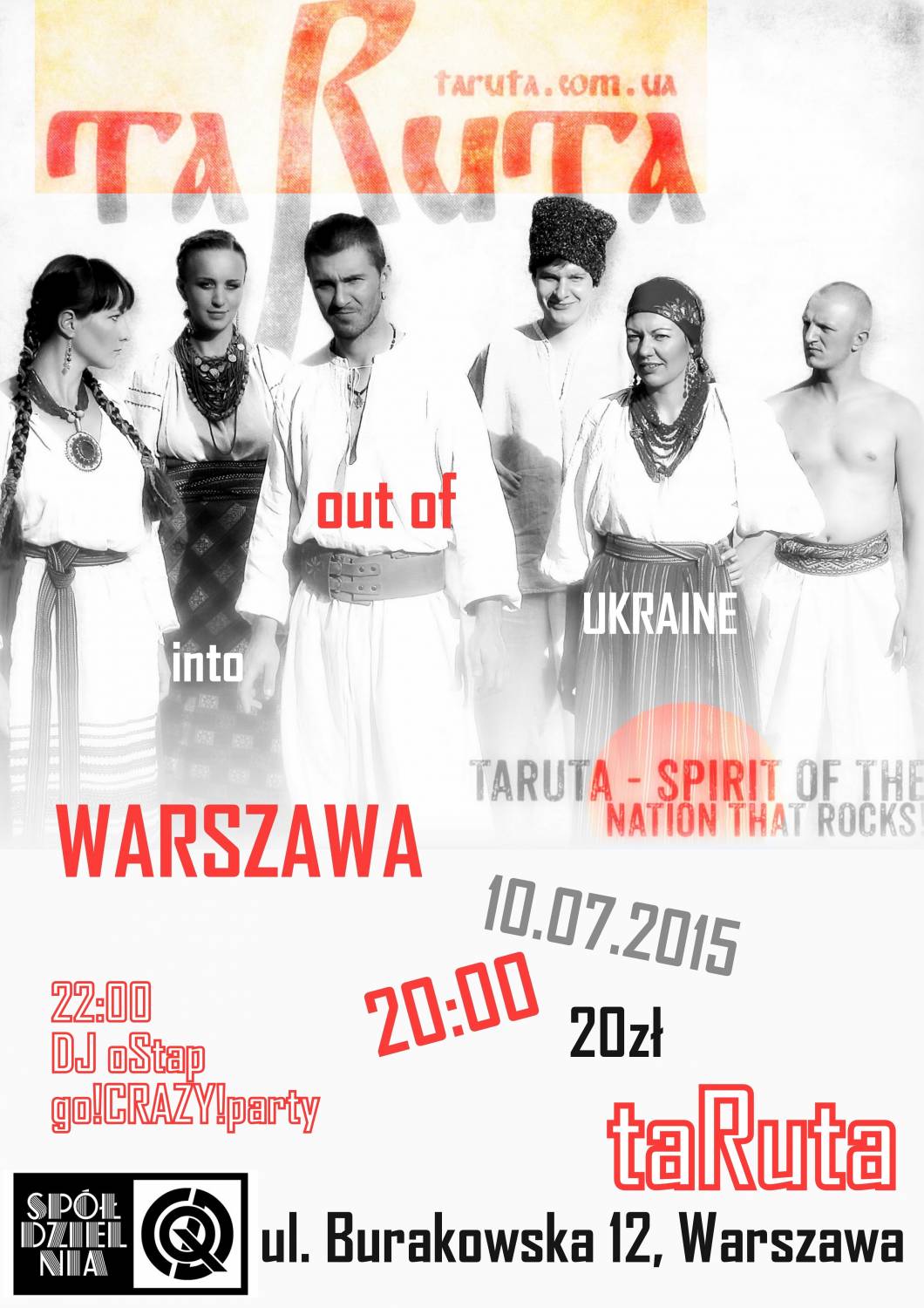 10.07.15 Варшава. Відбувся виступ гурту ТаРута лауреата фестивалю «Червона рута-2009»Гурт «ТаРута» (м. Київ) – лауреат фестивалю сучасної пісні та популярної музики «Червона рута-2009» виступив 10 липня 2015 р. у Варшаві в залі Spółdzielnia Dom Qltury, ul. Burakowska 12, 01-066 Warszawa